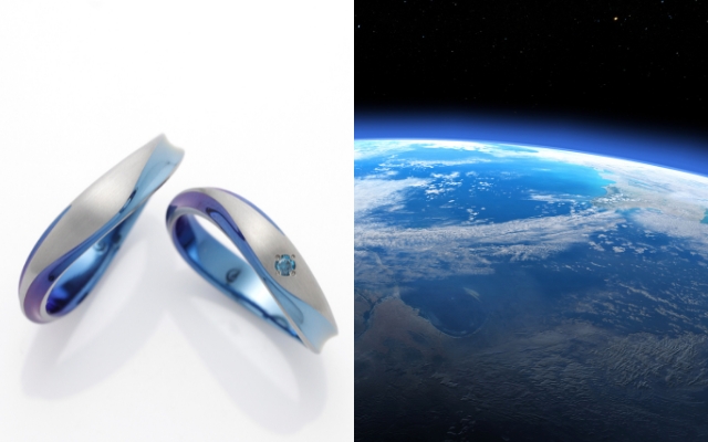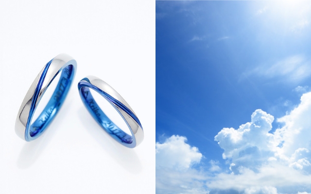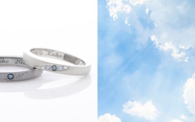 どこまでも深い空の優しさをその一粒に。吸い込まれるような輝きは、ふたりの強い絆を映し出します。