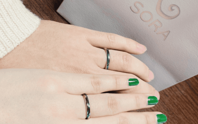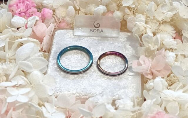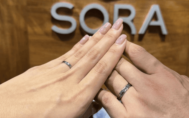 結婚指輪を探している時、他社のシンプルな指輪にピンと来なかったのですが、SORAの指輪を見た時に「これだ!」と一目惚れしました。また夫は金属アレルギーがあるので、その点でも安心して選ぶことができました。