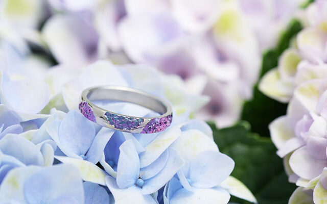 雨に濡れて鮮やかになり美しさを増す紫陽花は、どこか神秘的で気品高く、ジューンブライドにもぴったりの雰囲気のある花。今の季節にぴったりのカラーです。