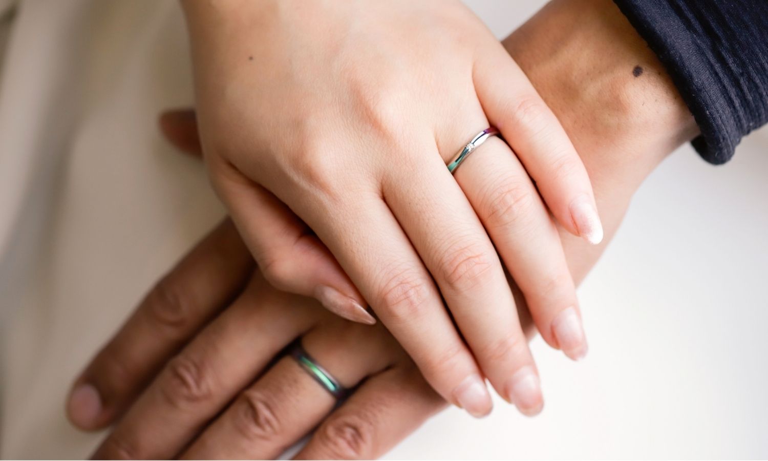 そわそわ、わくわくしながら箱を開けて、旦那さんと一緒に指輪をつけた時の幸せな気持ちは一生忘れません!