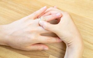 指に指輪の跡が付いてしまうことに驚かれる方がいますが、ほとんどの方が指に指輪の跡がつきます。うっ血感や痛みがなければ特に問題はありませんので、ご安心ください。