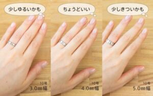 幅が太くなるほど指に接する面積が多くなるため、同じサイズでもきつく感じる傾向があります。