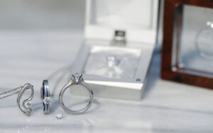 ダイアミューズの良さは、プロポーズ後に二人でデザインを考えてオリジナルの指輪やネックレスをつくれるところです。二人の出会いやプロポーズの思い出を込めて、デザインを考えるのが人気です。