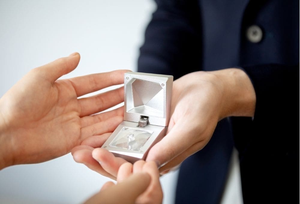 手のひらに収まるサイズ感で、パートナーに気付かれることなくポケットに忍ばせることができ、プロポーズの瞬間をスマートに演出します。