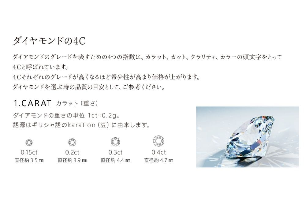 ※オンラインショップではご希望のカラット、クラリティのダイヤモンドをお選びいただき別途購入をお願いいたします。(カット[エクセレント]、カラー[D]は全品共通)