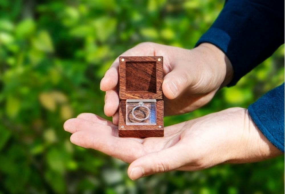 ポケットに入るミニマムサイズ、スマートに箱を開けるための工夫、ダイヤモンドを美しく見せるリングの彫刻。ぬくもりある木の上質感、透明感溢れる台座でダイヤモンドの輝きを引き立てるダイアミューズで、記憶に残る最高のプロポーズを。