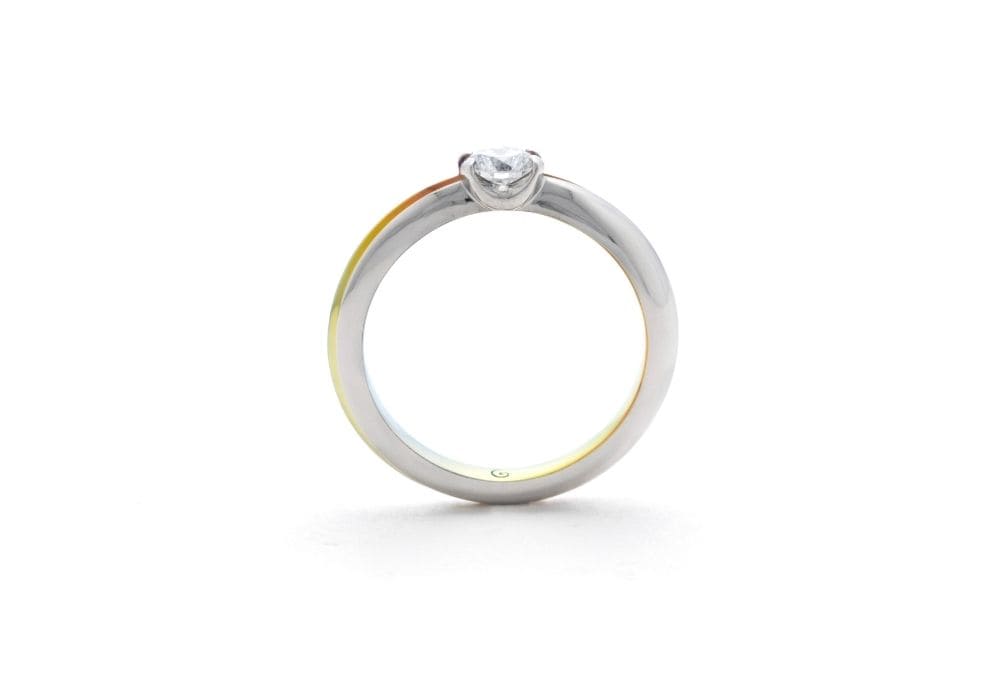 指輪を一周するシャープで鮮やかなラインが、ダイヤモンドの輝きを引き立てるデザイン。ひとすじの軌道を描いて宙を駆ける流星を表現しています。