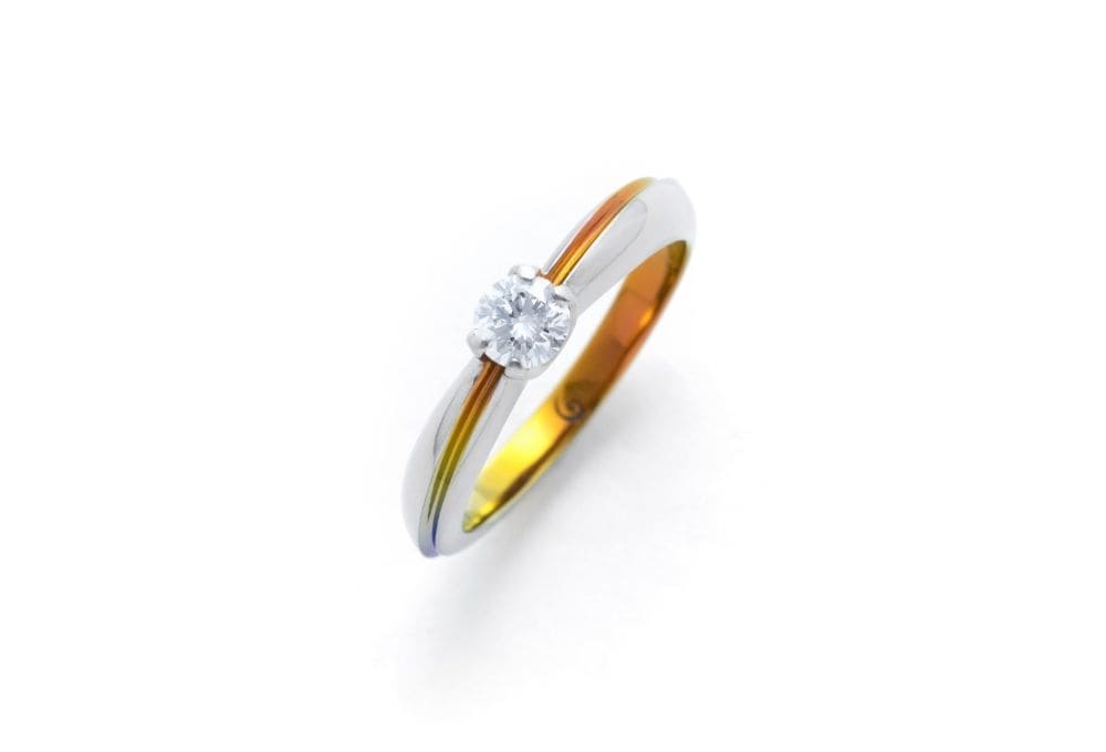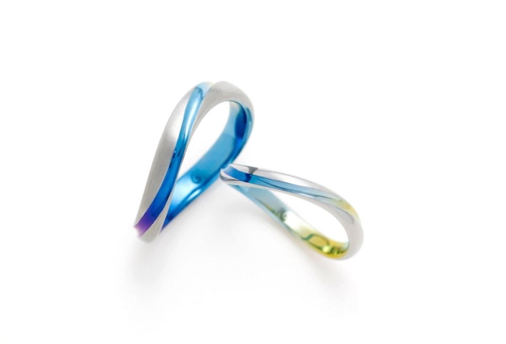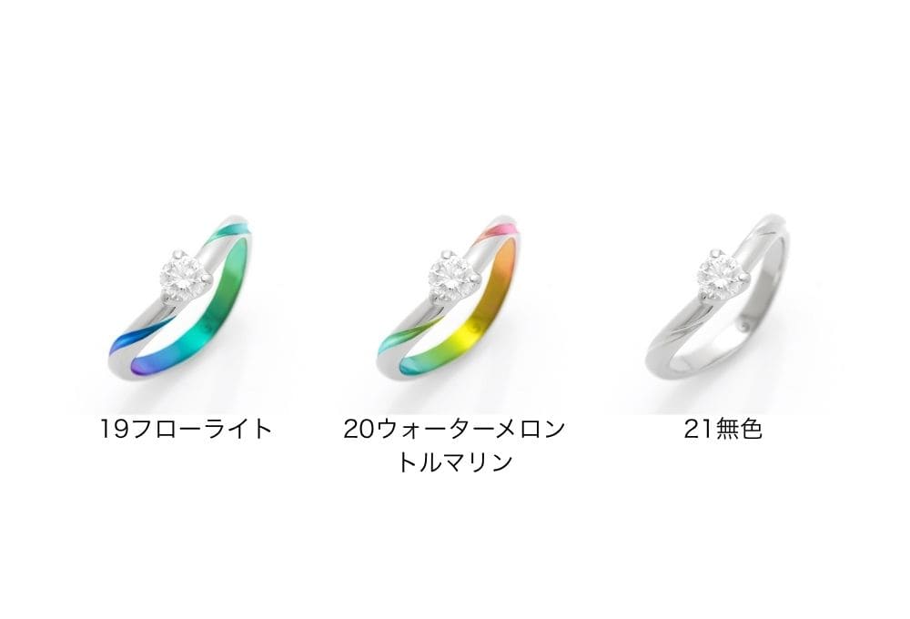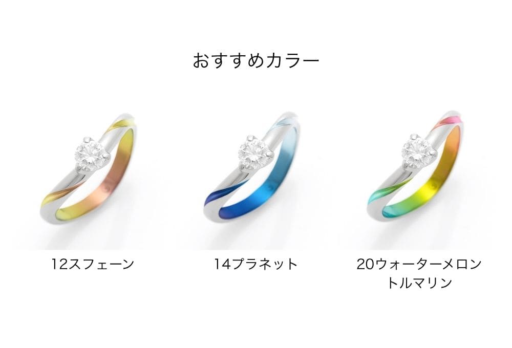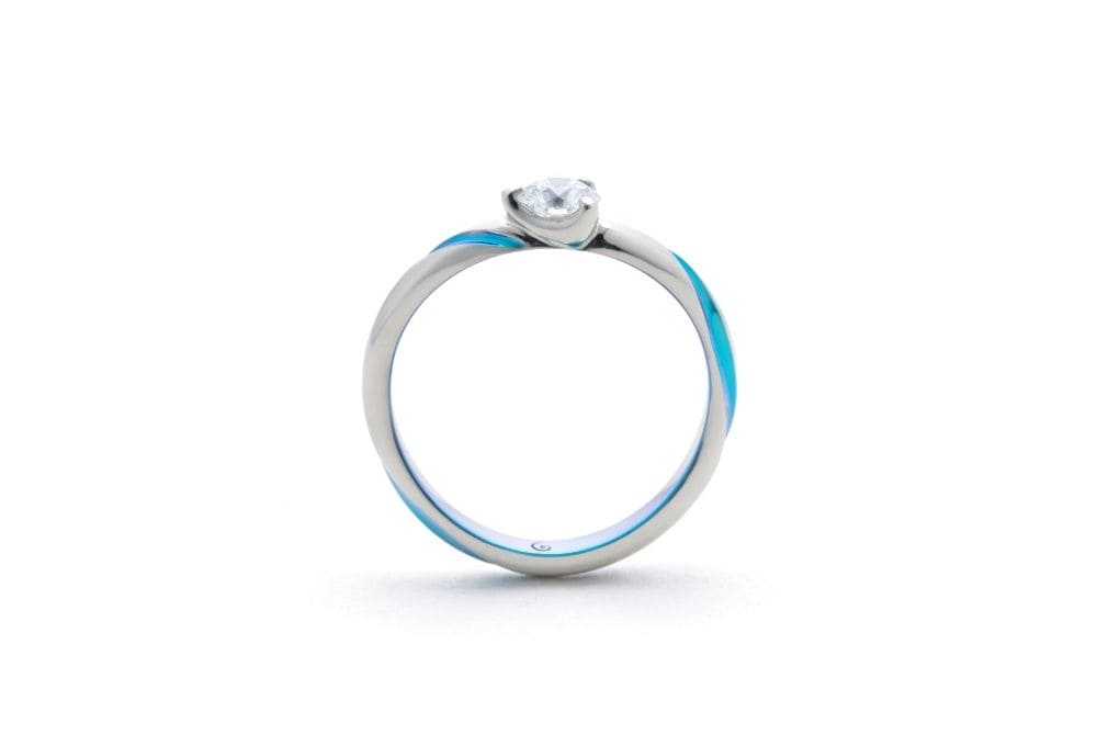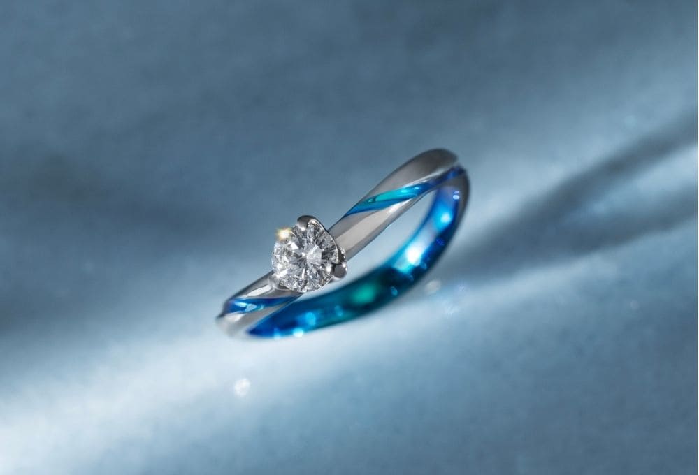 波打つラインの鮮やかな色と一粒煌めくダイヤモンドが、相互に引き立て合うデザイン。広大な海を進むときの目印となる北極星を表現しています。