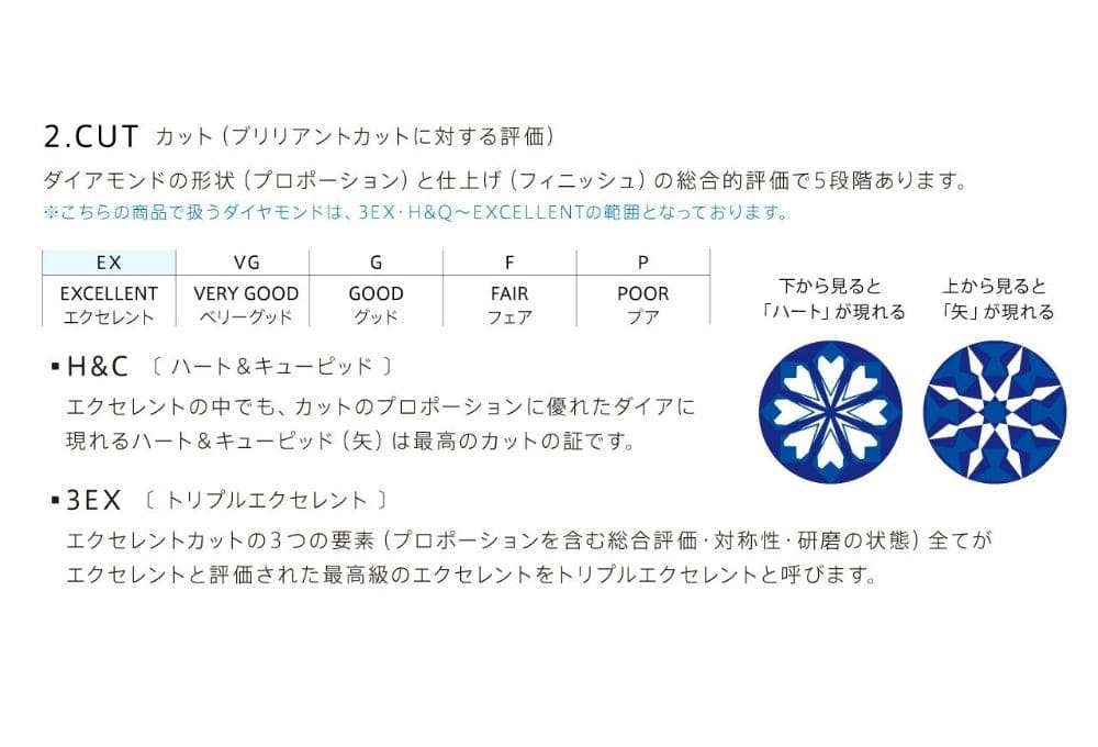 カット[エクセレント]カラー[D]の高い品質に、カラット、クラリティはご希望に合わせてお選びください。