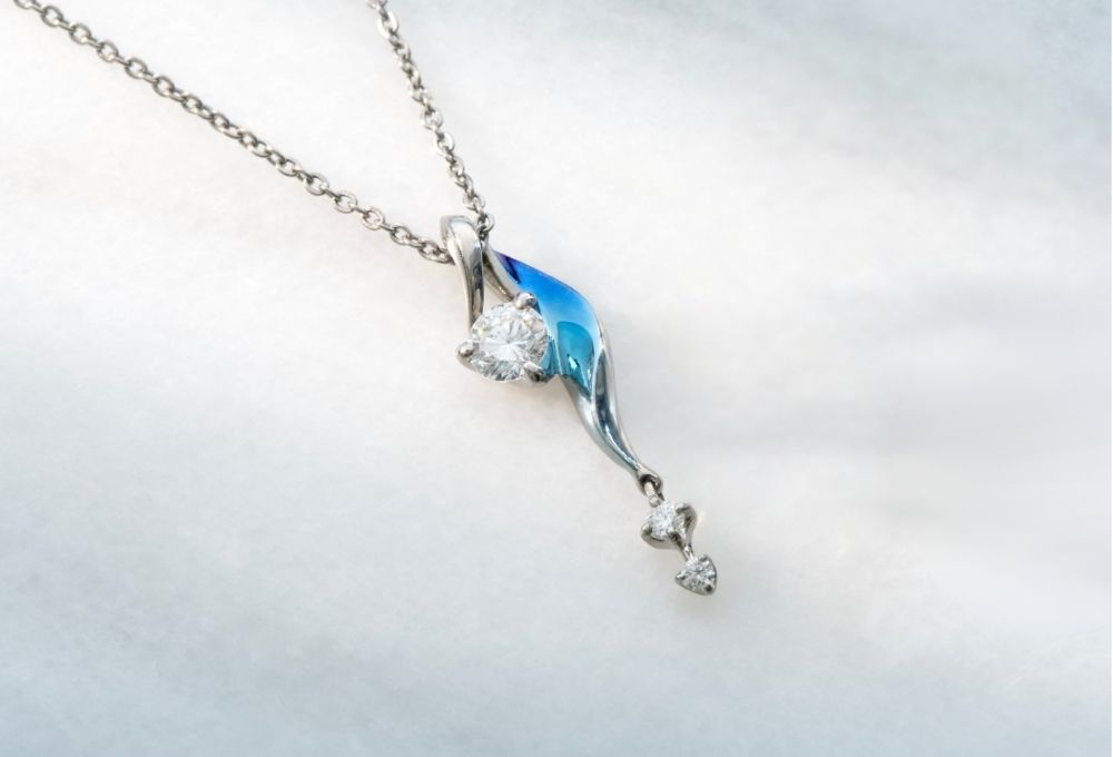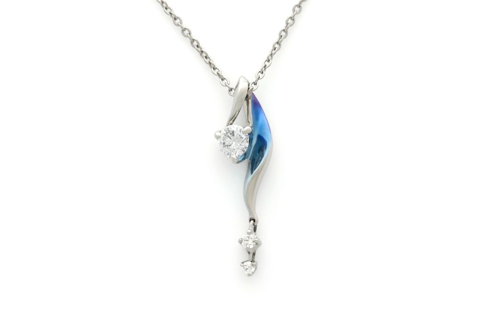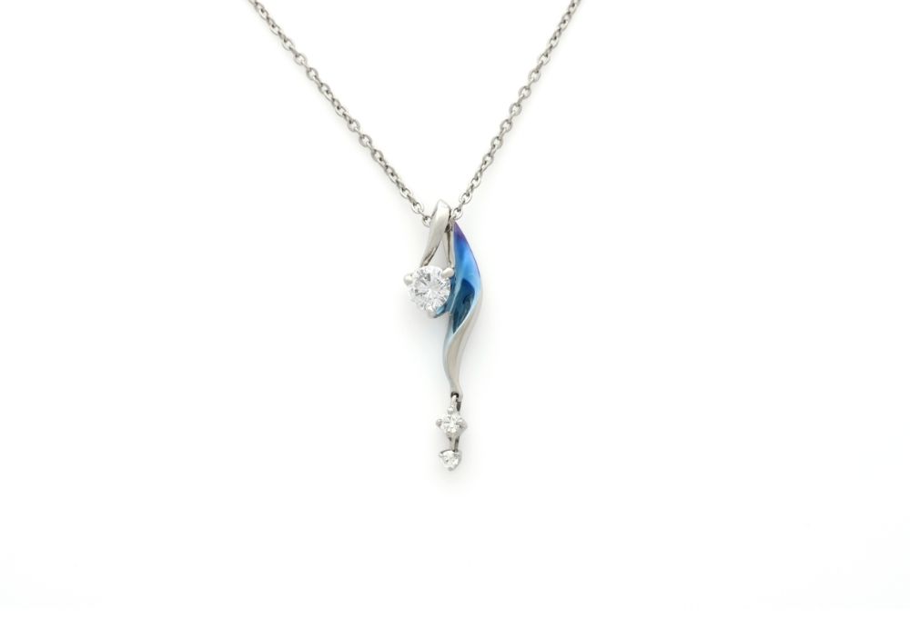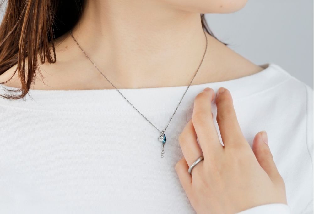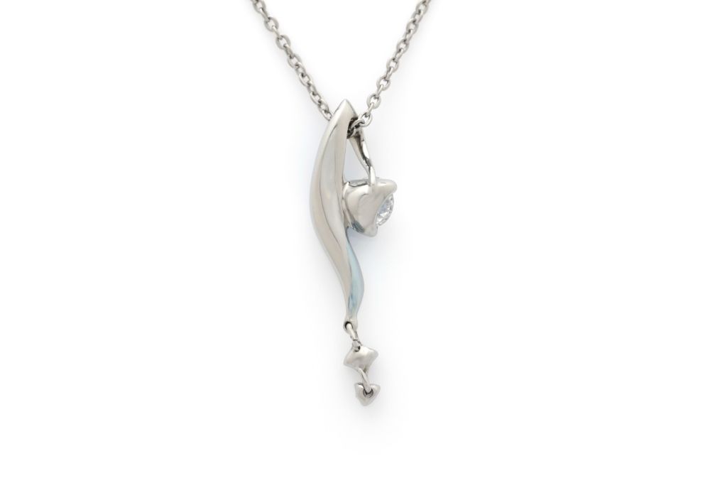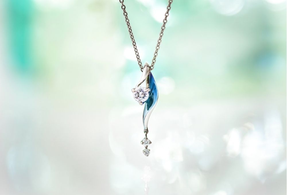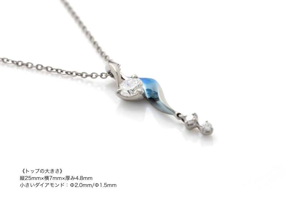 ふわりと流れるようなひねりのあるフォルムに、ダイヤモンドが揺れるネックレス。