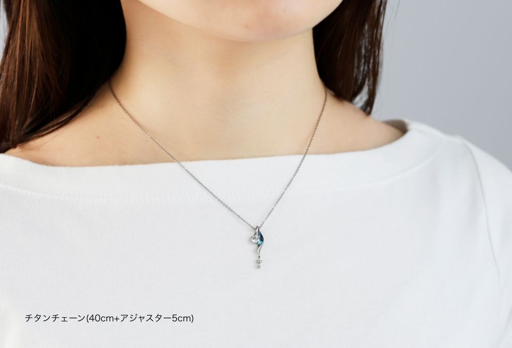 大小三粒の結晶が、寄り添うふたりとひとつの誓いを象徴し胸元で煌めきます。