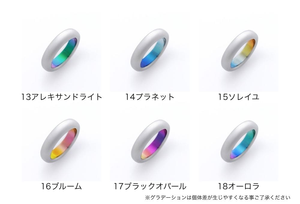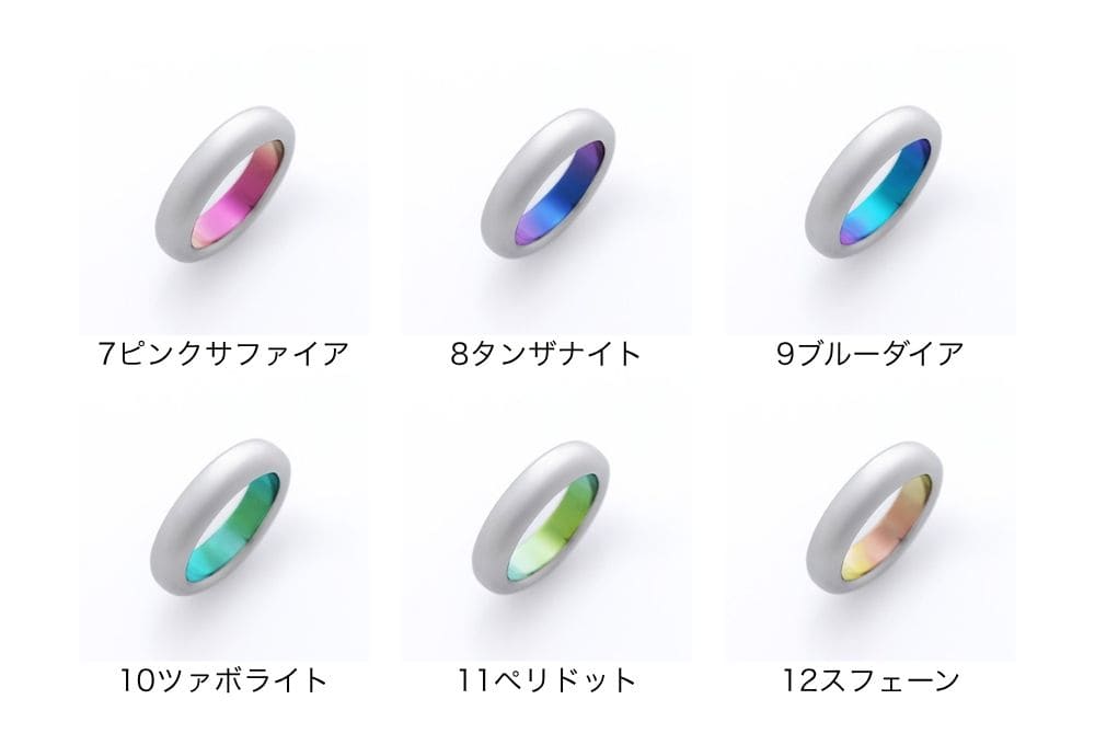 基本のジルコニウムカラーは、単色13色とグラデーション7色。お揃いのカラーや刻印などを選んで、小さな家族の誕生や成長をオーダーメイドでお祝いしましょう。