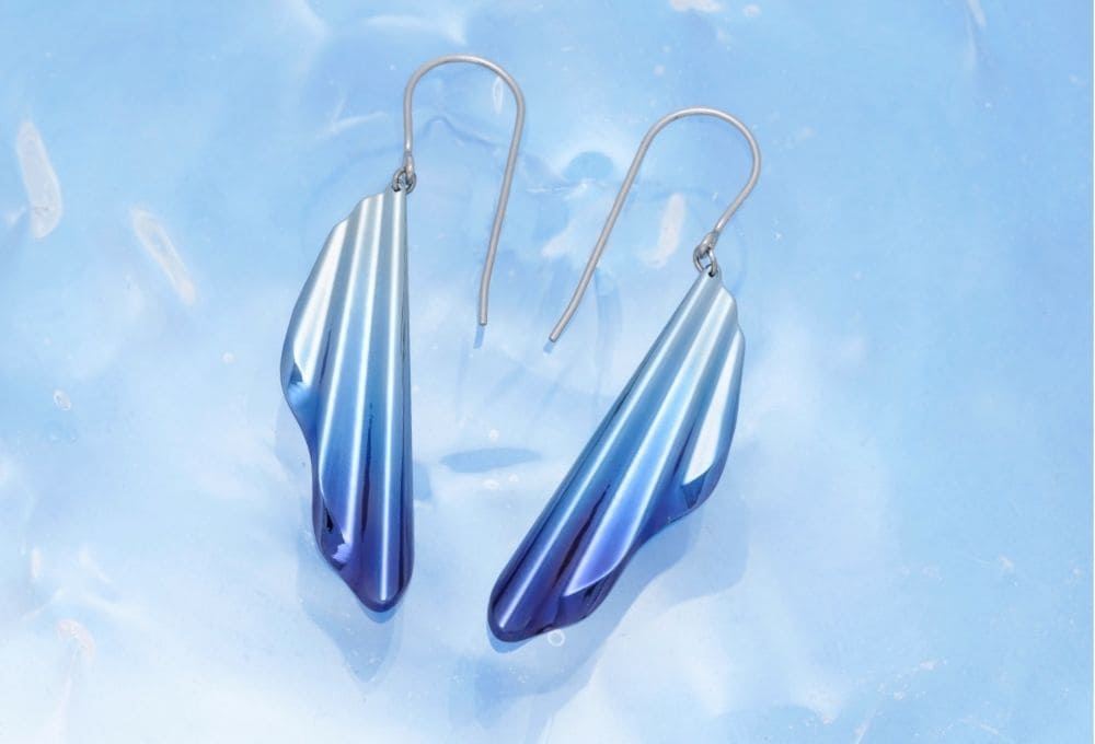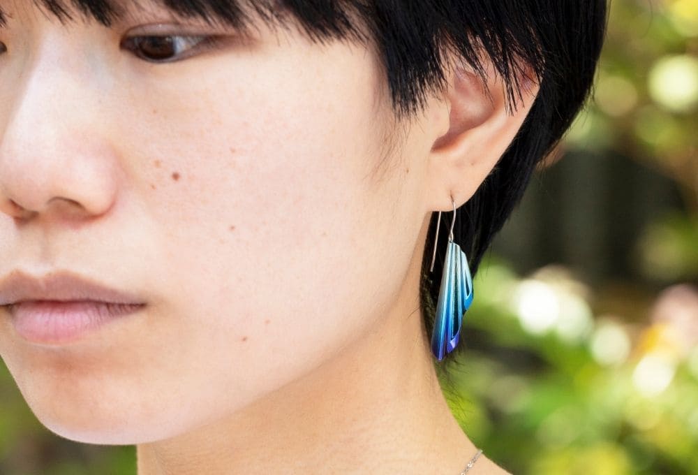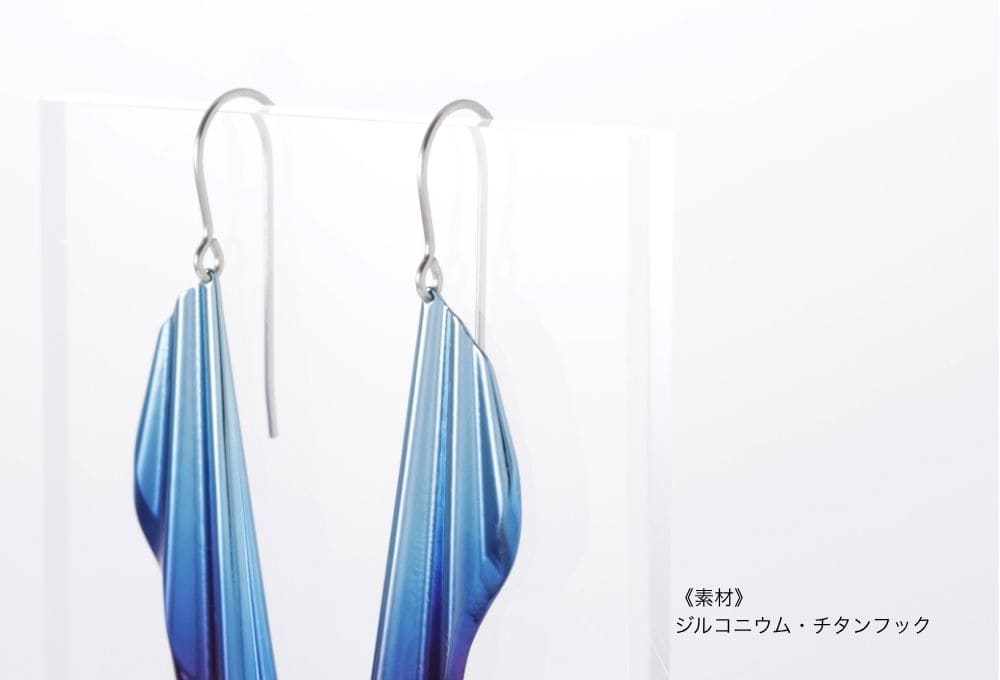 素材は、鮮やかなカラーに色づくジルコニウム。軽く、強度があって金属アレルギー対応の安心で安全な素材です。フックも金属アレルギーの起こりにくいチタン製なので安心です。