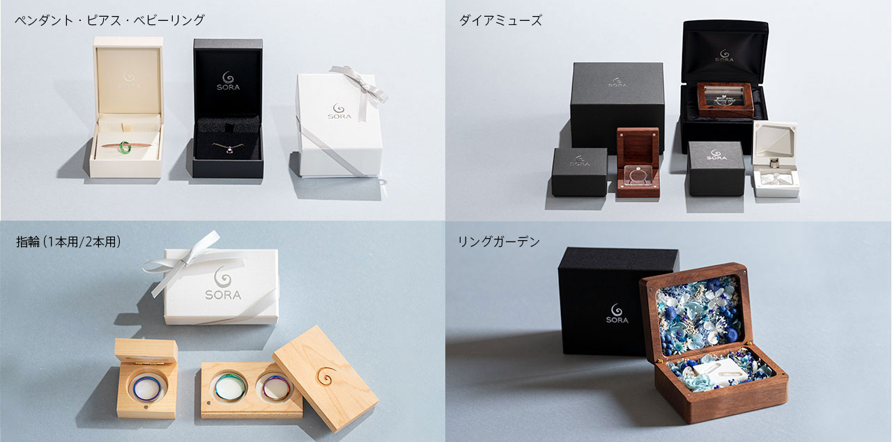 ※ダイアミューズやリングガーデンなどのボックス類はロゴ入り紙箱に入れてお届けします。リボンラッピングをご希望の方は、ご注文時に備考にてお伝えください。