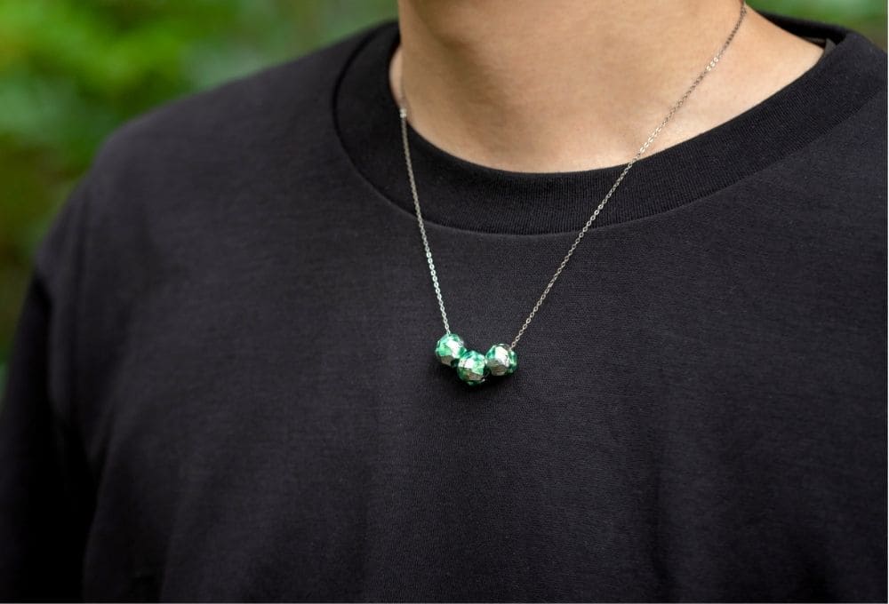 「苔玉」は、同シリーズの苔ネックレスに追加することで、自分だけのオリジナルスタイルを演出することができます。「苔玉」を重ねることで、苔が織りなす深みのある自然美を胸元に描きます。内面にある静かな強さや揺るぎない信念を、苔のモチーフに重ねて。