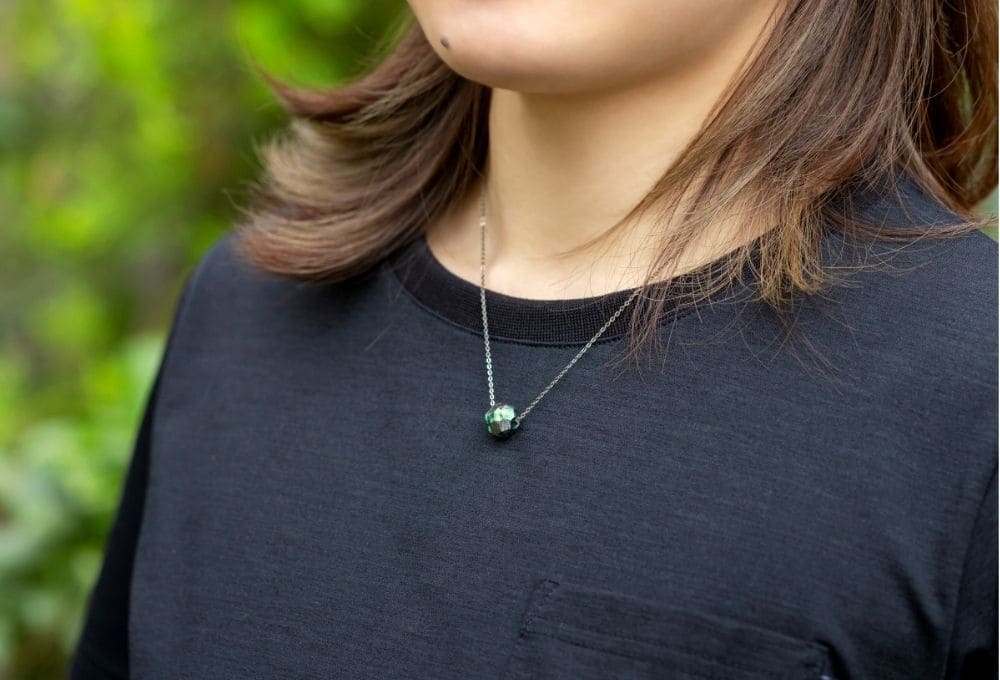 長い年月をかけて苔が石と一体化したように、内面にある静かな強さや、揺るぎない信念を表現します。シンプルなデザインなので、どんな服装にも合わせやすく、普段使いにもぴったりです。また、同シリーズのピアスやイヤリングと重ね付けすることで、より一層個性を演出することができます。