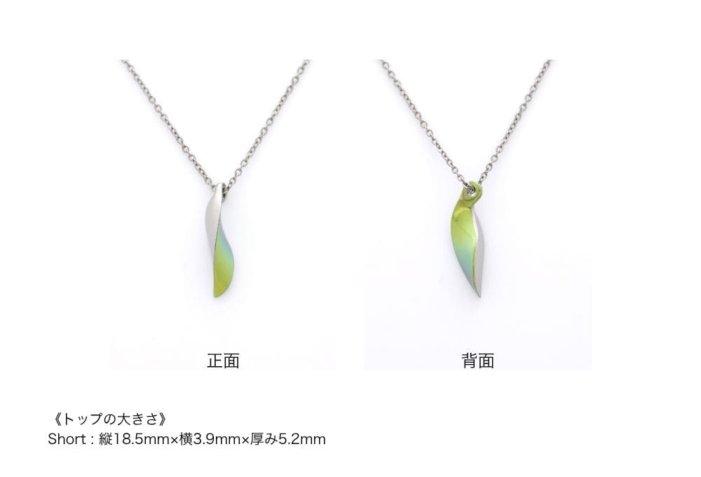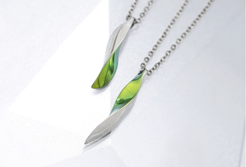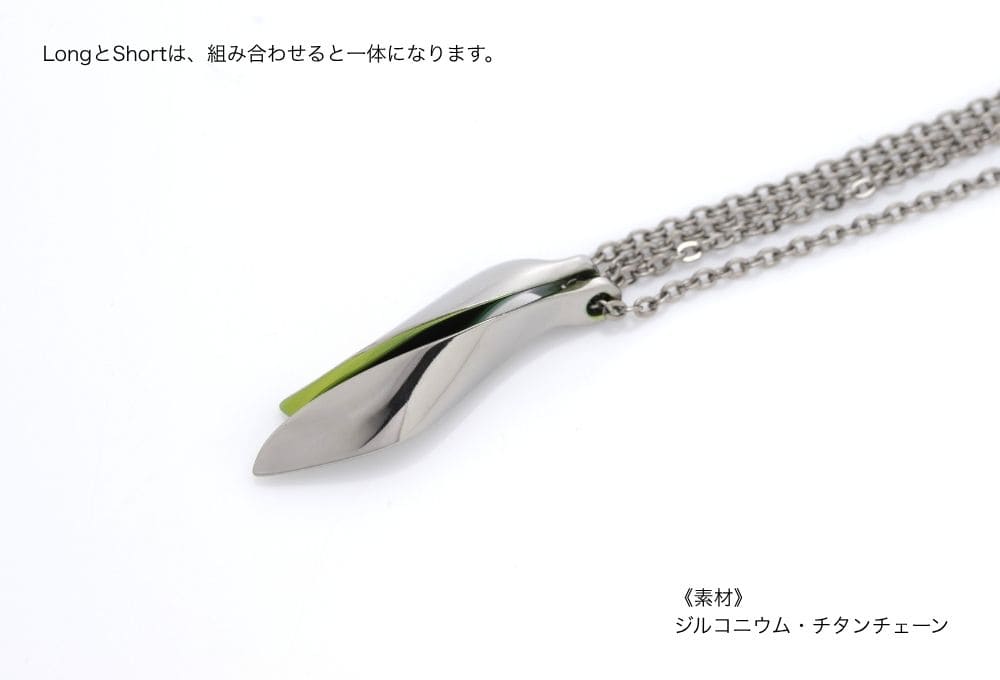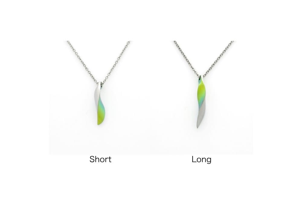 素材は、鮮やかなカラーに色づくジルコニウム。軽く、強度があって金属アレルギー対応の安心で安全な素材です。チェーンも金属アレルギーの起こりにくいチタン製なので安心です。