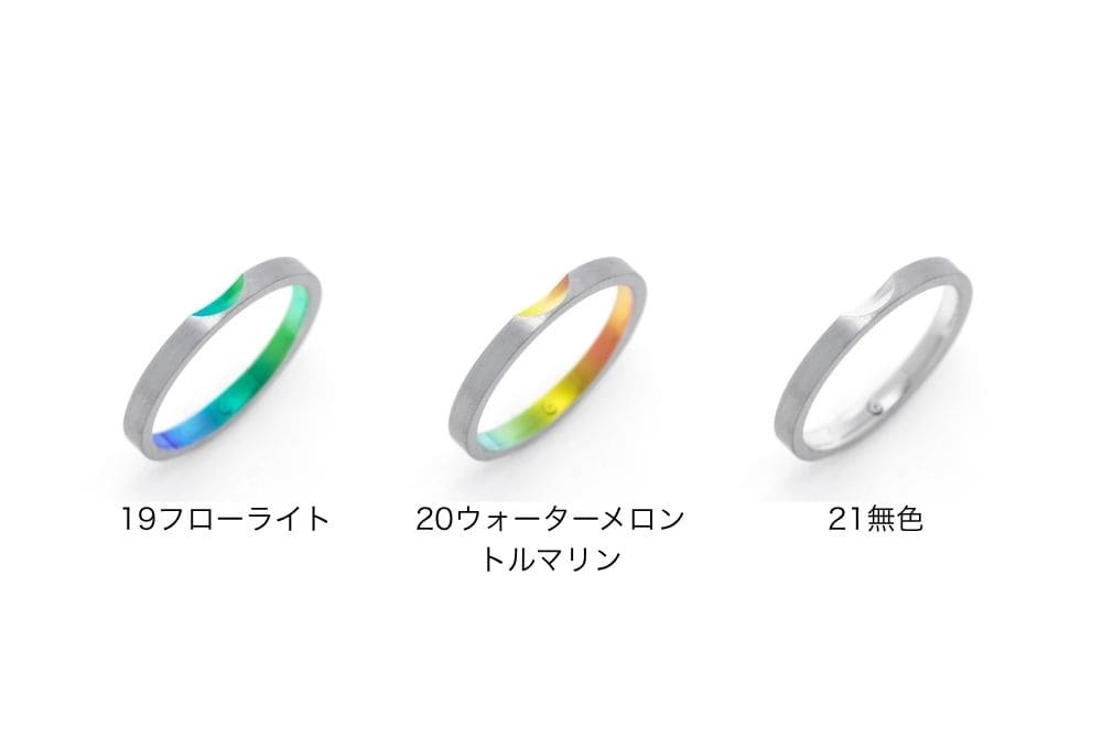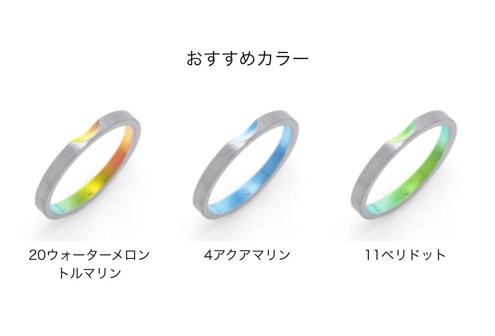 すっきりとしたシンプルなフォルムに、ワンポイントで発色を施したデザイン。雨がやんだ後、春の日差しを浴びてきらりと光る雨露を表現しています。