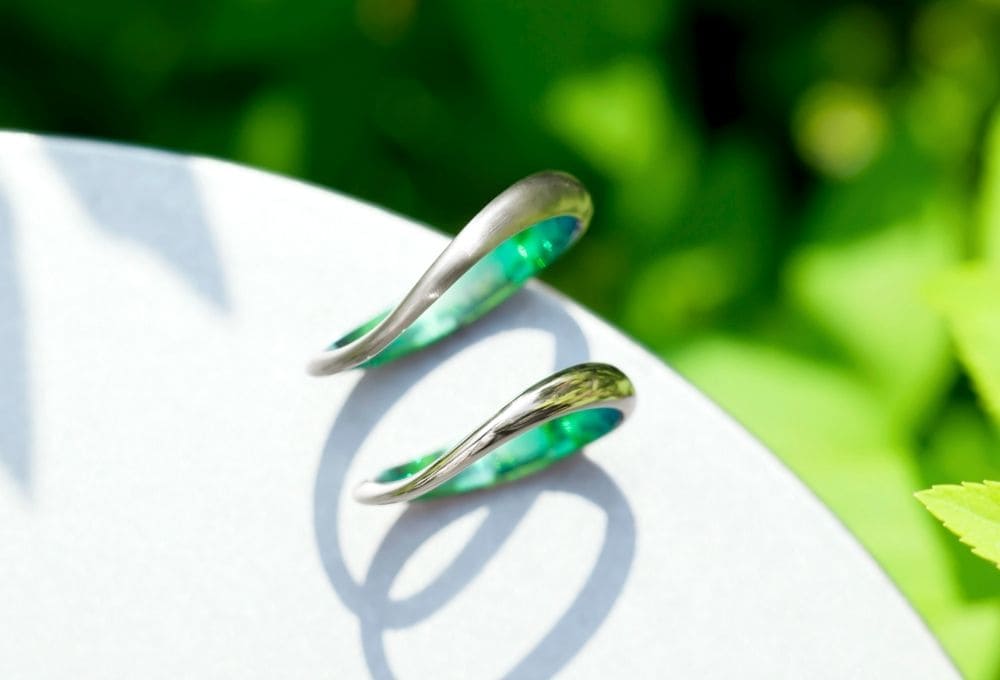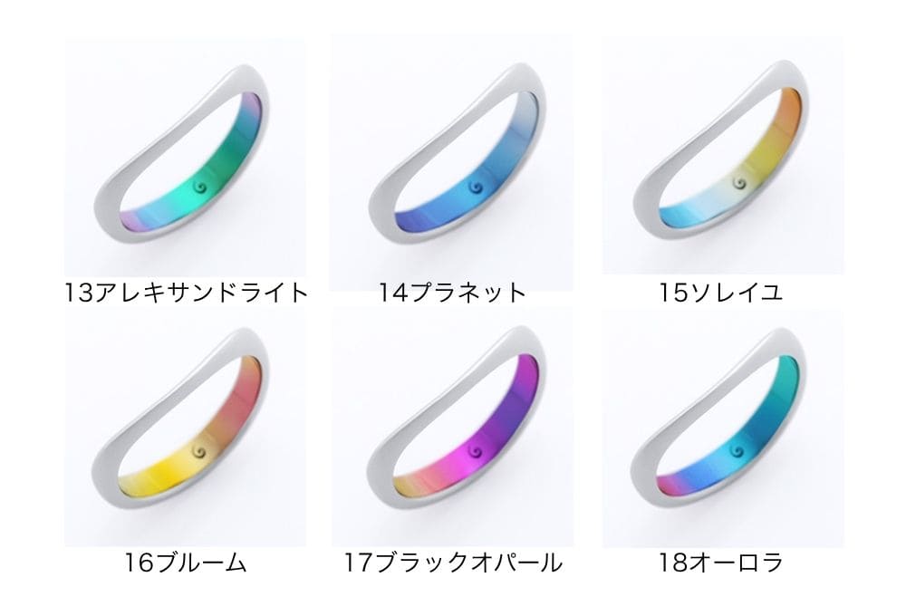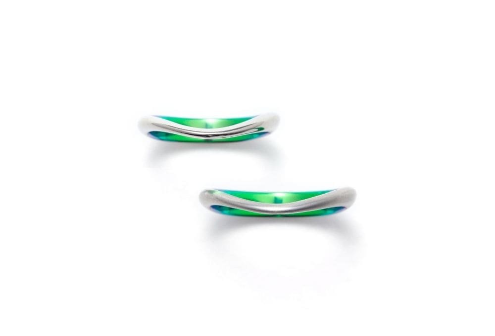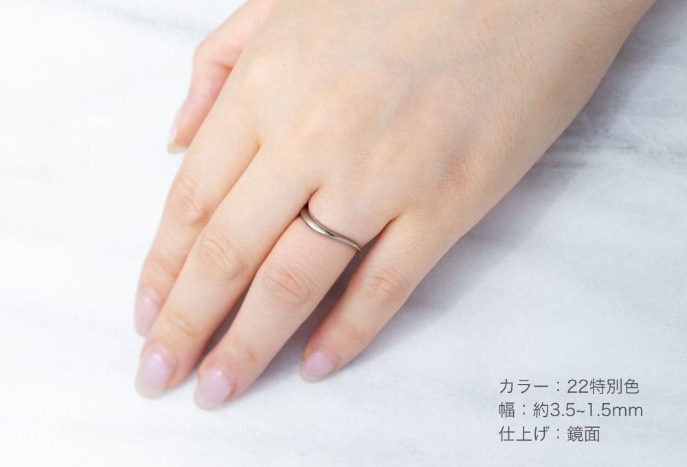 ゆるやかなウェーブが指に心地よくなじむデザイン。幅やカーブにさりげない抑揚をつけたシンプルな形です。モチーフは、芽吹いたばかりの若葉。
