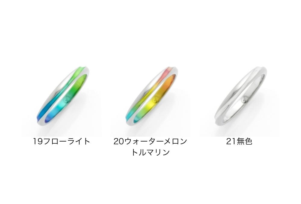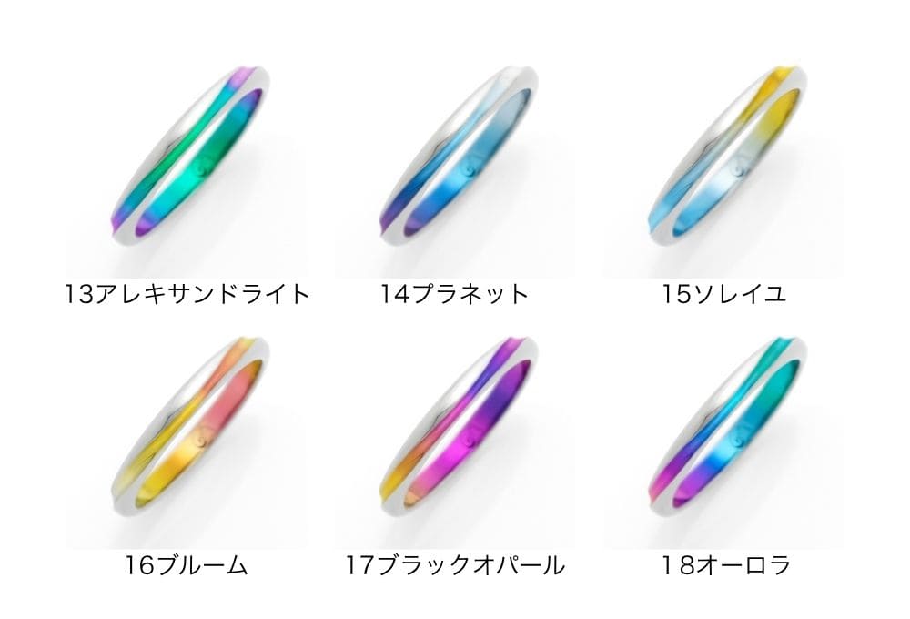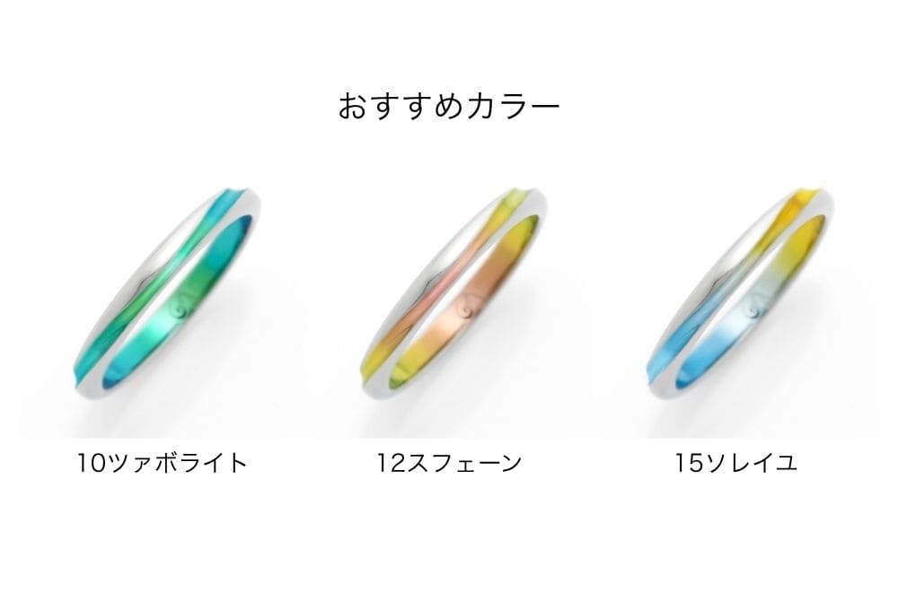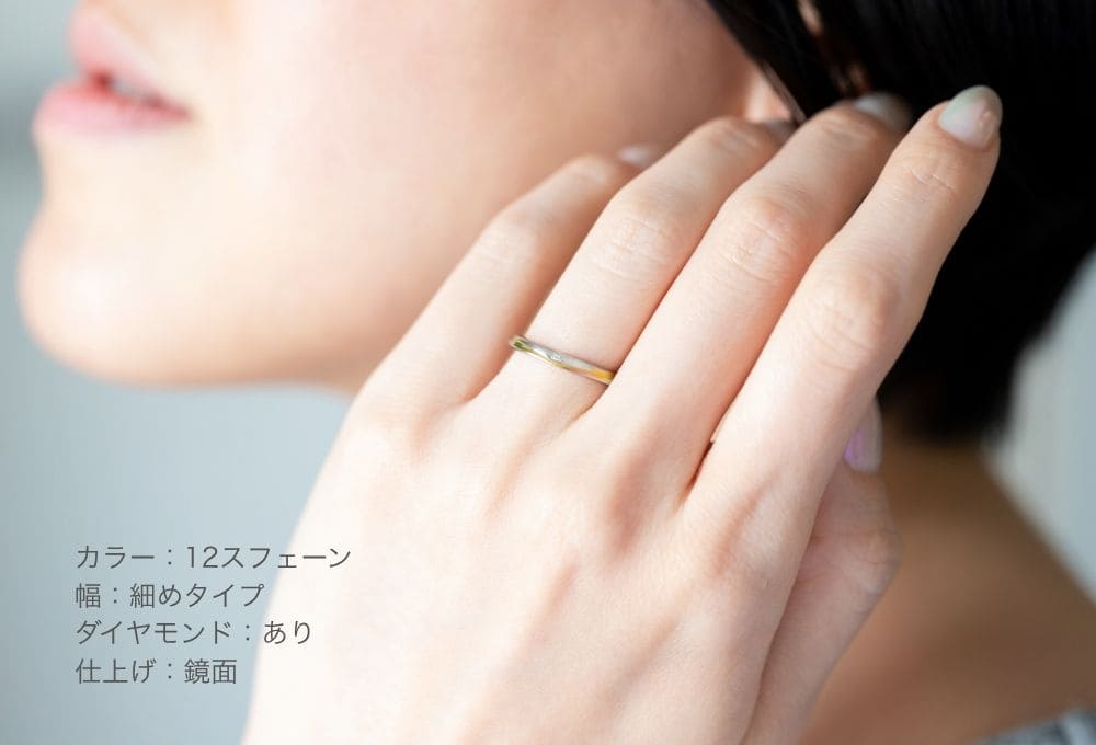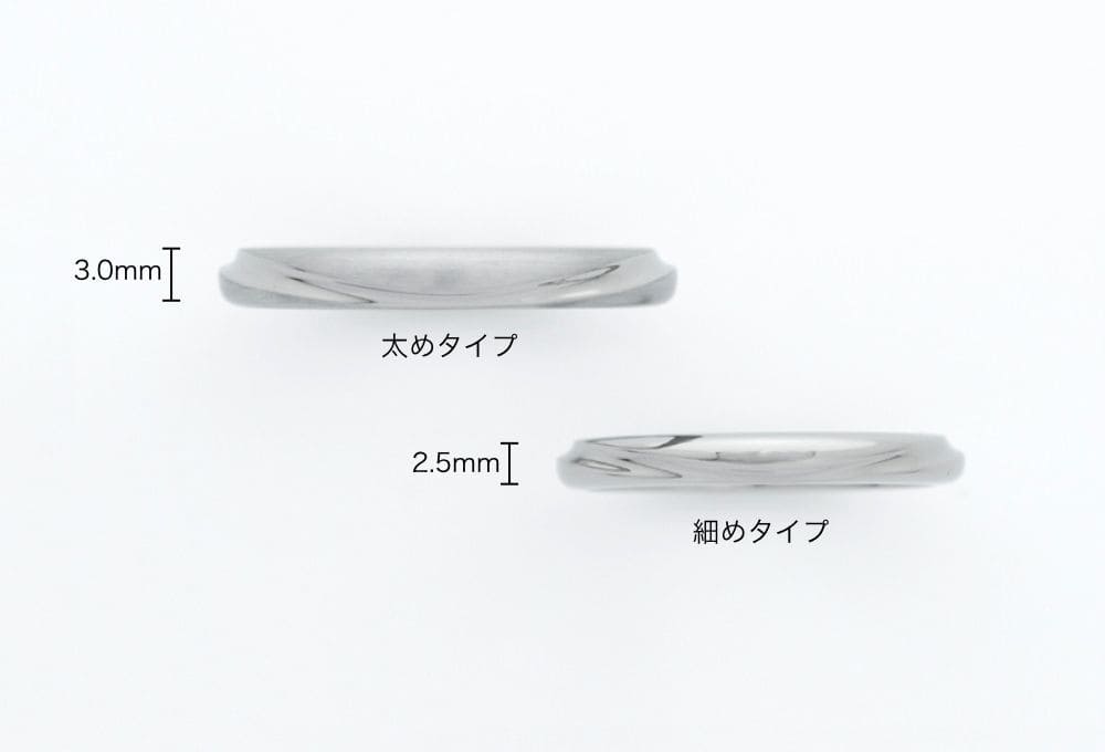 丸みを帯びたフォルムの表面を、ラインが波打つように一周し、動きを感じさせるデザイン。細身で着け心地がよく、なおかつ発色も楽しめる形です。