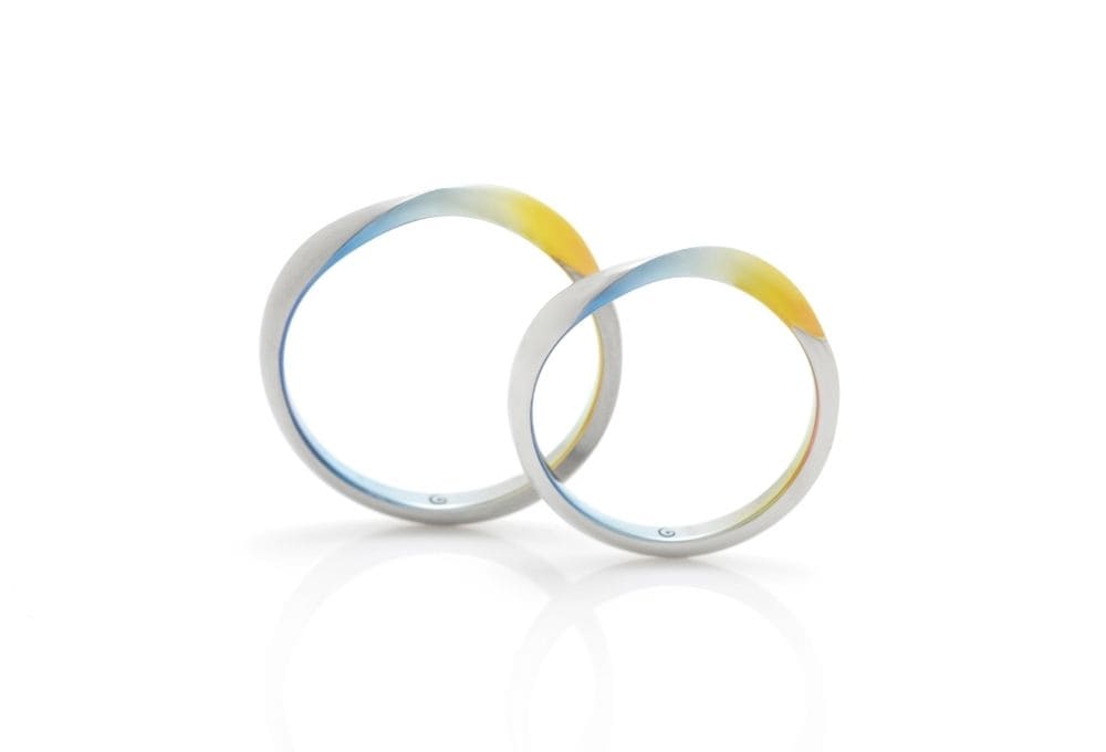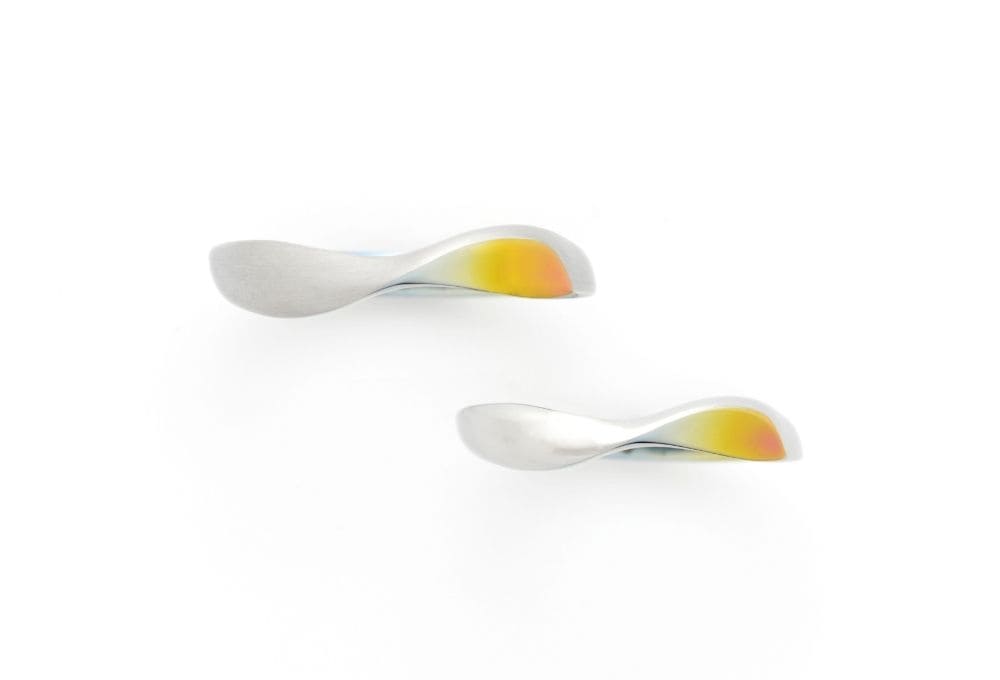 くびれのあるフォルムに発色がのぞく、メリハリの効いたデザイン。連なる山々の彼方から朝日が昇り、空が色づいていく様子を表現しています。