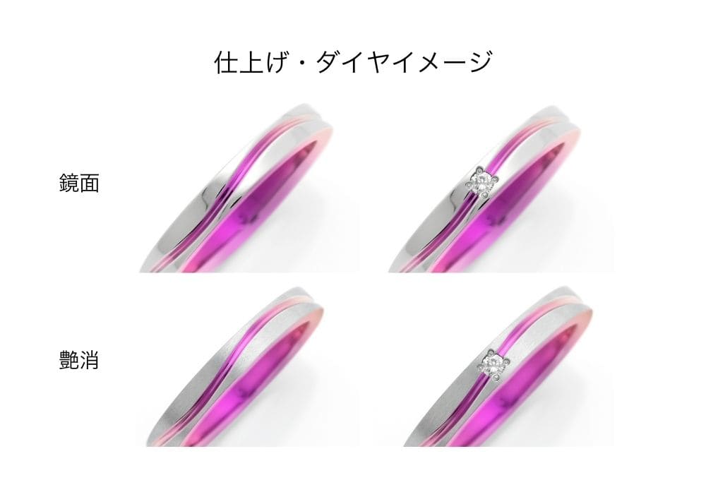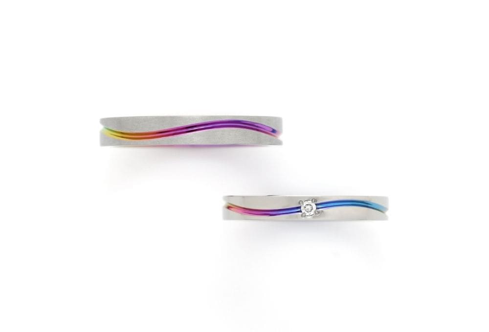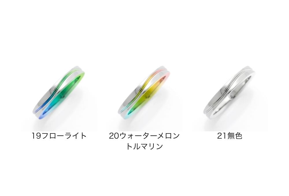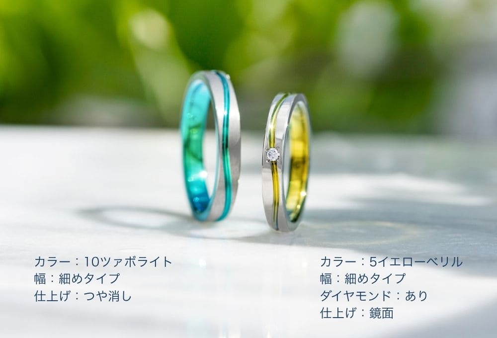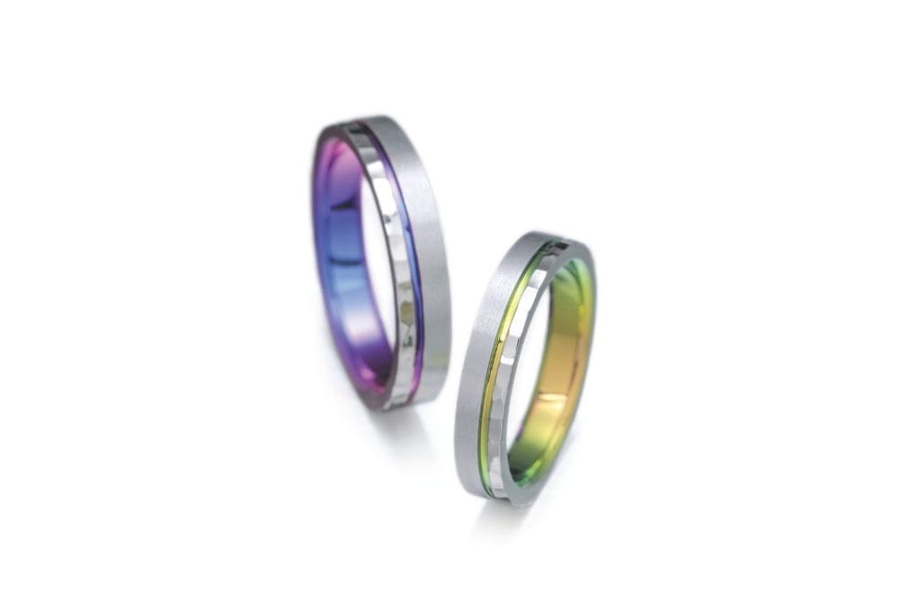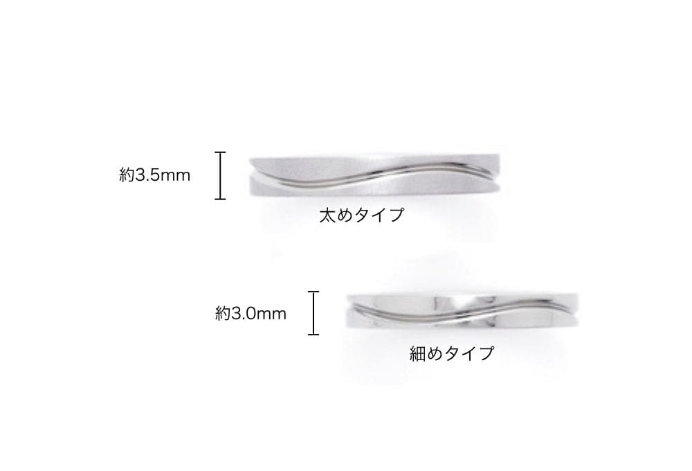 平らな面に一本のラインが入ったシンプルな形状。色が見える部分が多いため、ふたりのこだわりを反映させられます。ゆるやかなカーブを描くラインは鼓動を表現。
