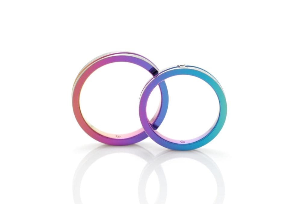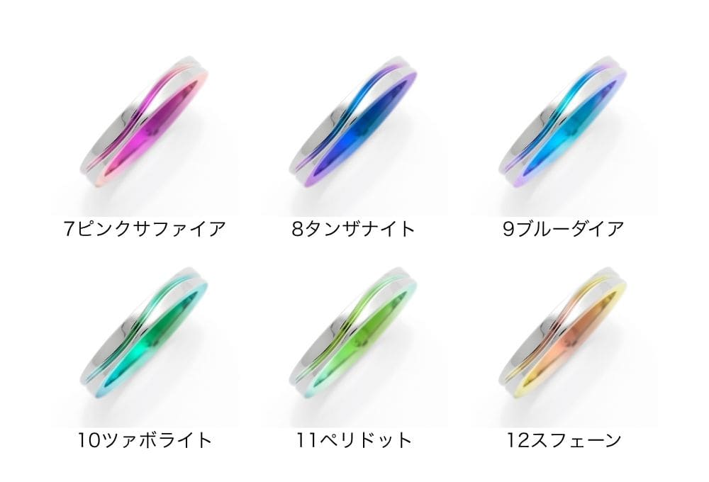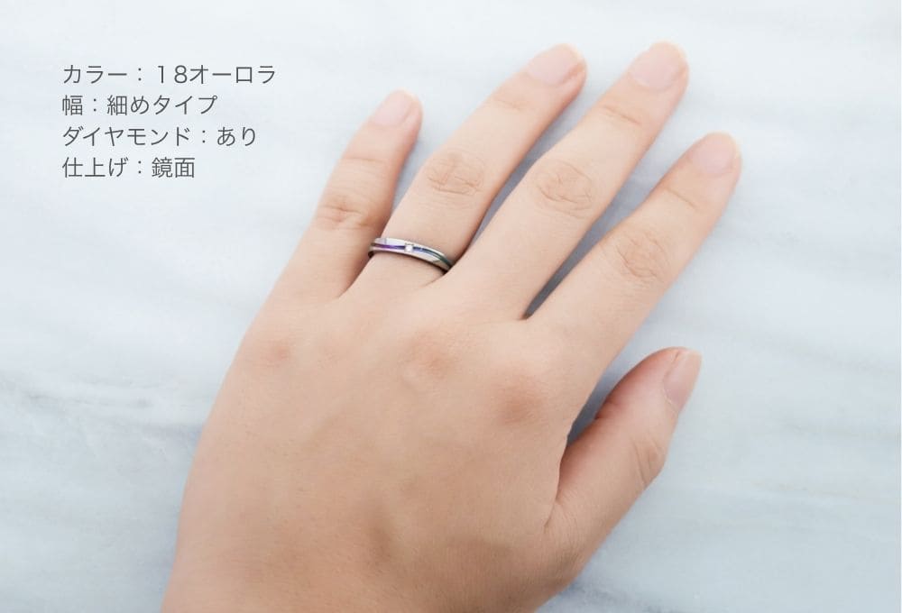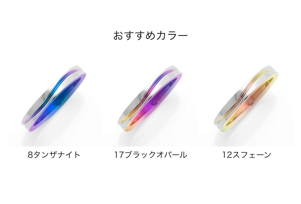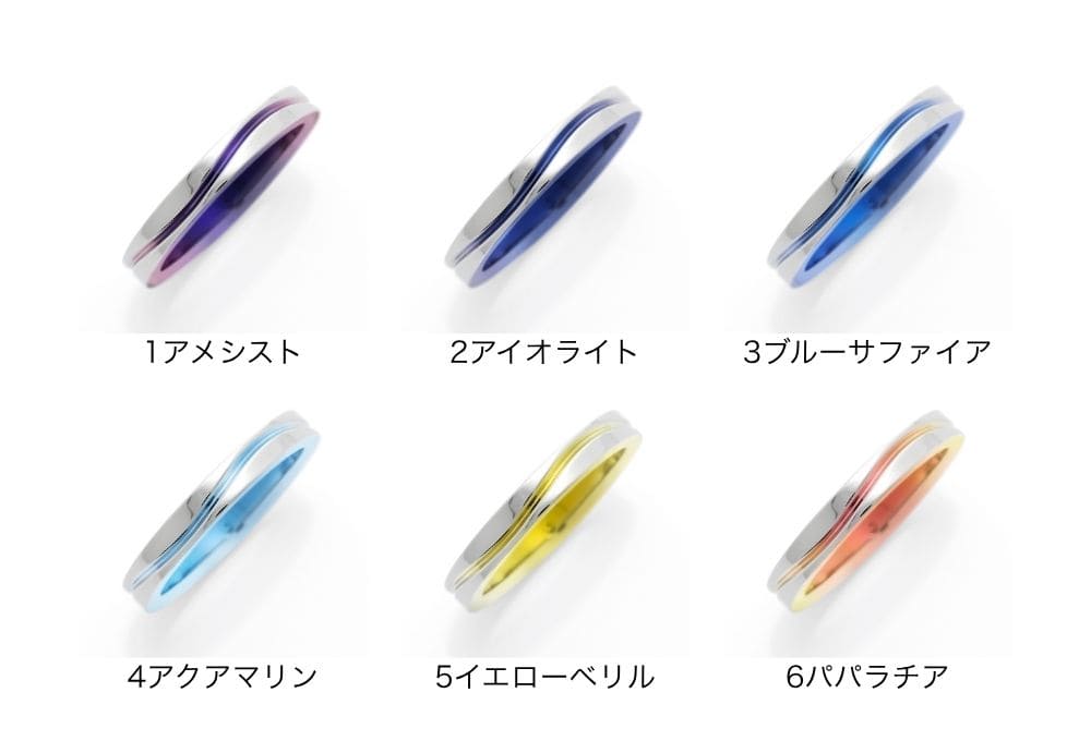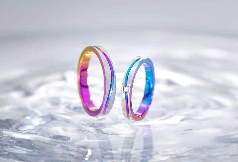 平らな面に一本のラインが入ったシンプルな形状。色が見える部分が多いため、ふたりのこだわりを反映させられます。ゆるやかなカーブを描くラインは鼓動を表現。