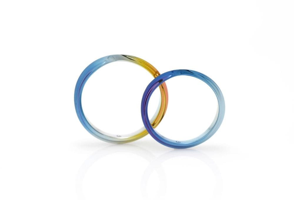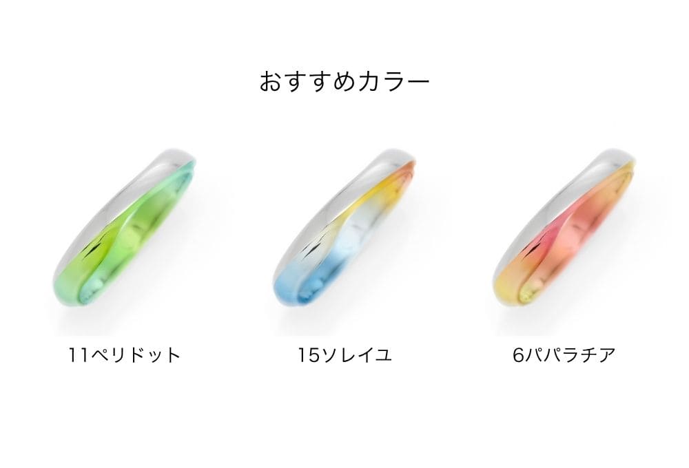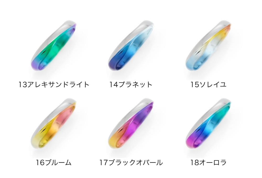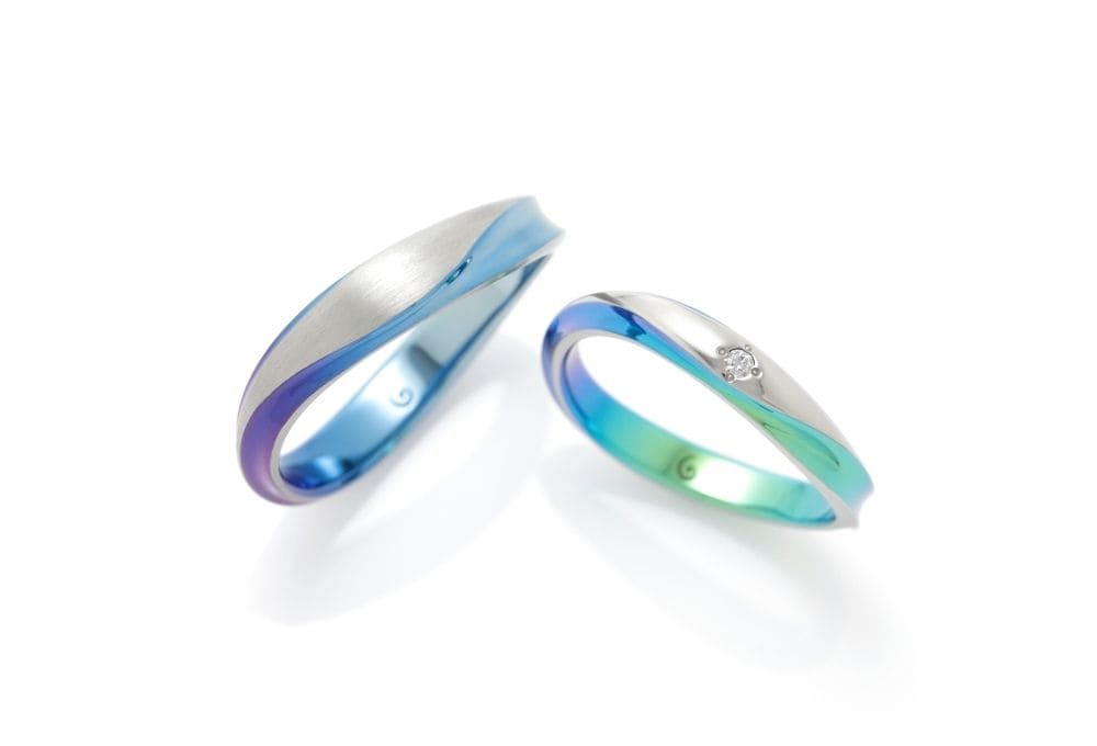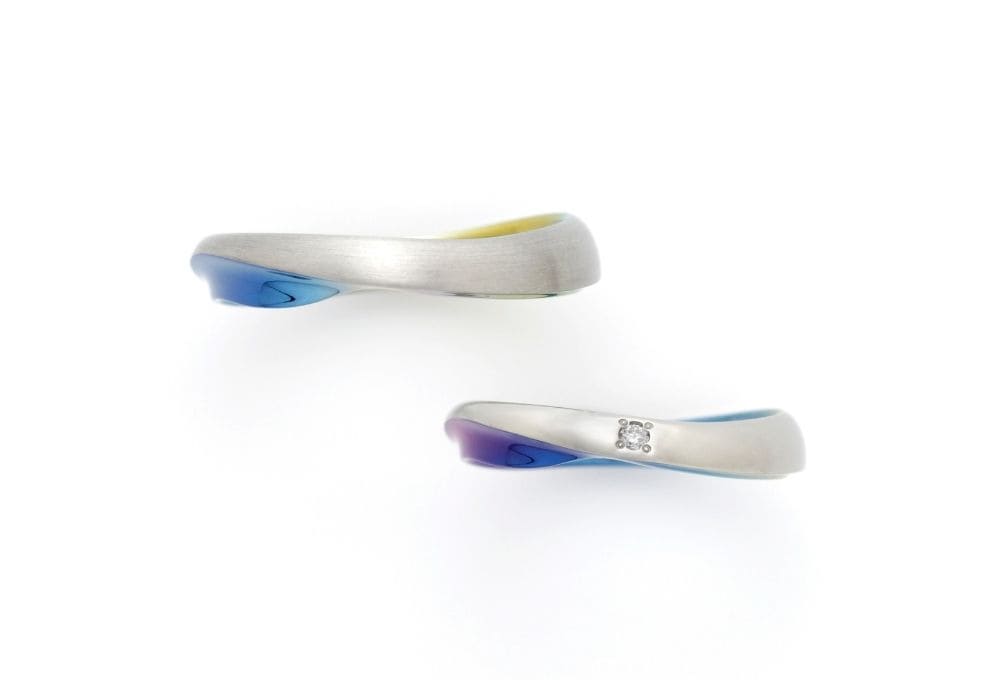 ダイナミックで変化に富んだフォルムが特徴。着ける向きによって、形の印象や色の見える面積が大きく変わるデザインです。表現したのは、波がうねる一瞬の形。