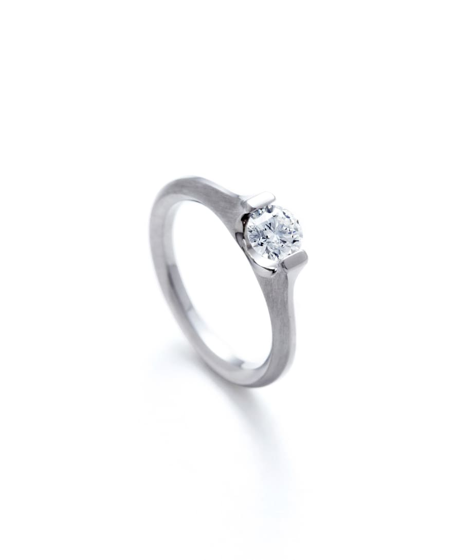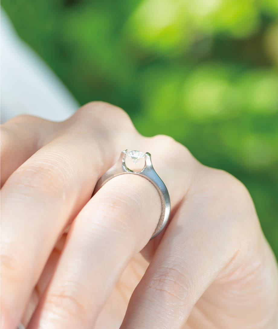 チタンのアームがダイヤモンドを支え、輝きを最大限に魅せる設計。浮かぶようなセッティングで、夏の夜空に瞬くはくちょう座のデネブを表現しています。