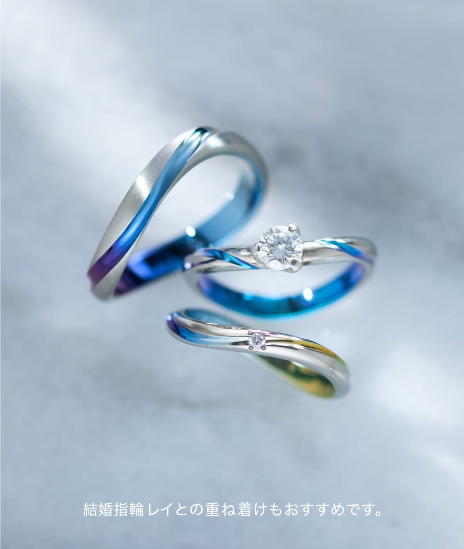 波打つラインの鮮やかな色と一粒煌めくダイヤモンドが、相互に引き立て合うデザイン。広大な海を進むときの目印となる北極星を表現しています。