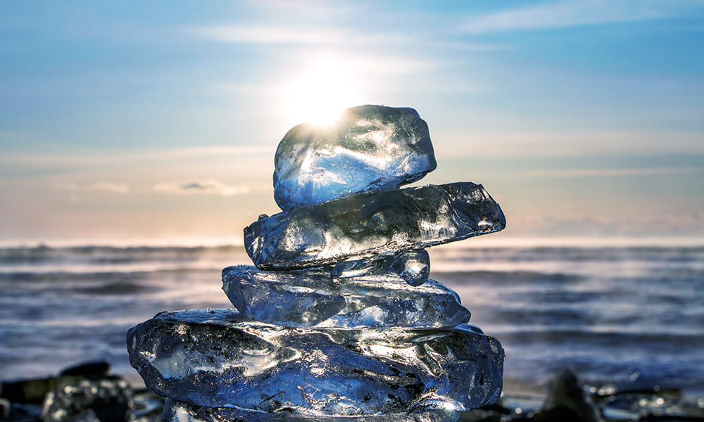 十勝川から流れ出して海岸に打ち上げられ、日差しを浴びて煌めく透明な氷。その姿に、さまざまな経験を共有するにつれて輝きを増すふたりの絆を重ねて。