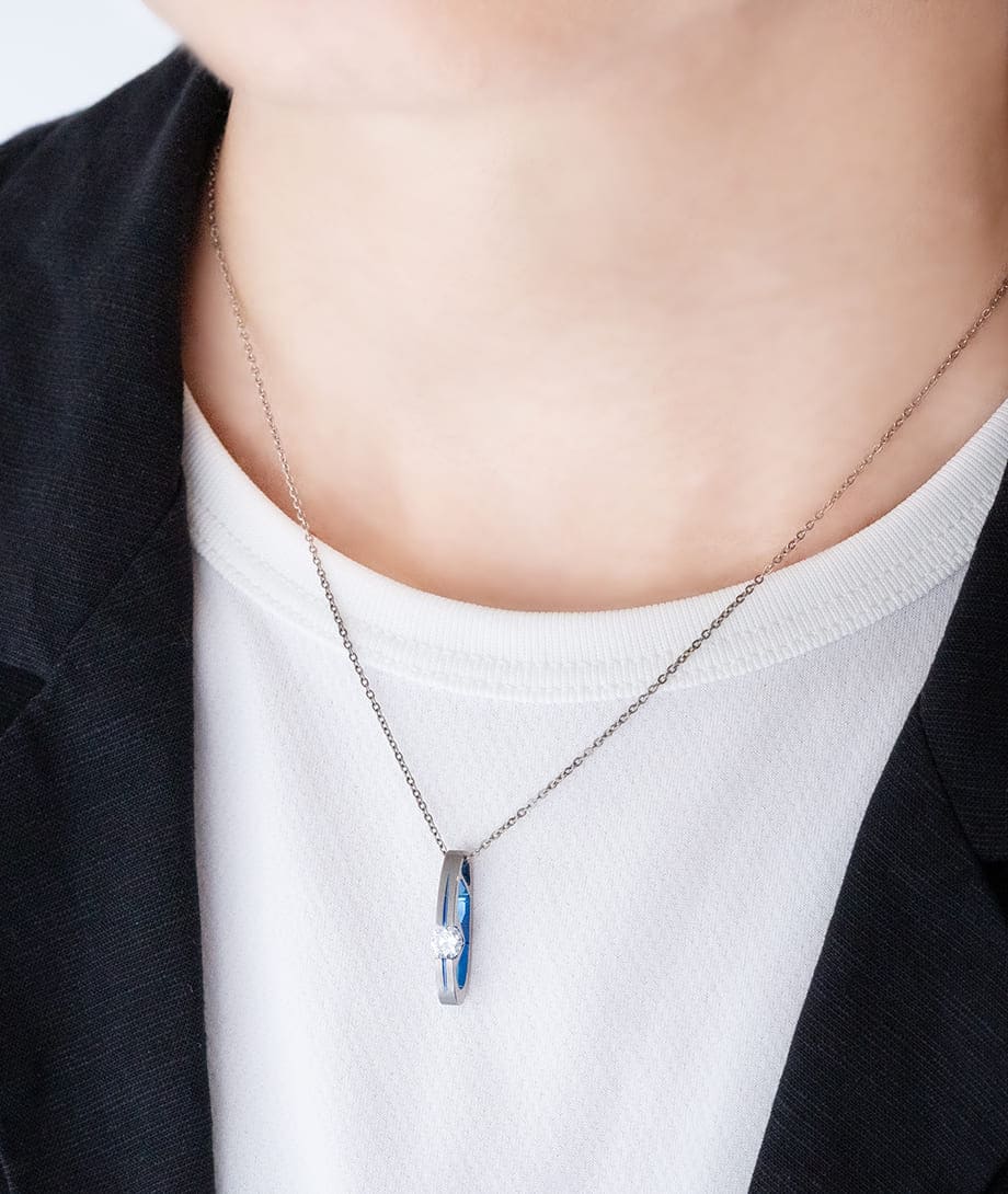 鮮やかな色が引き立てるダイヤモンドの輝き。発色は、正面からはさりげなく、横からはしっかりと見えるようデザインされたペンダントです。