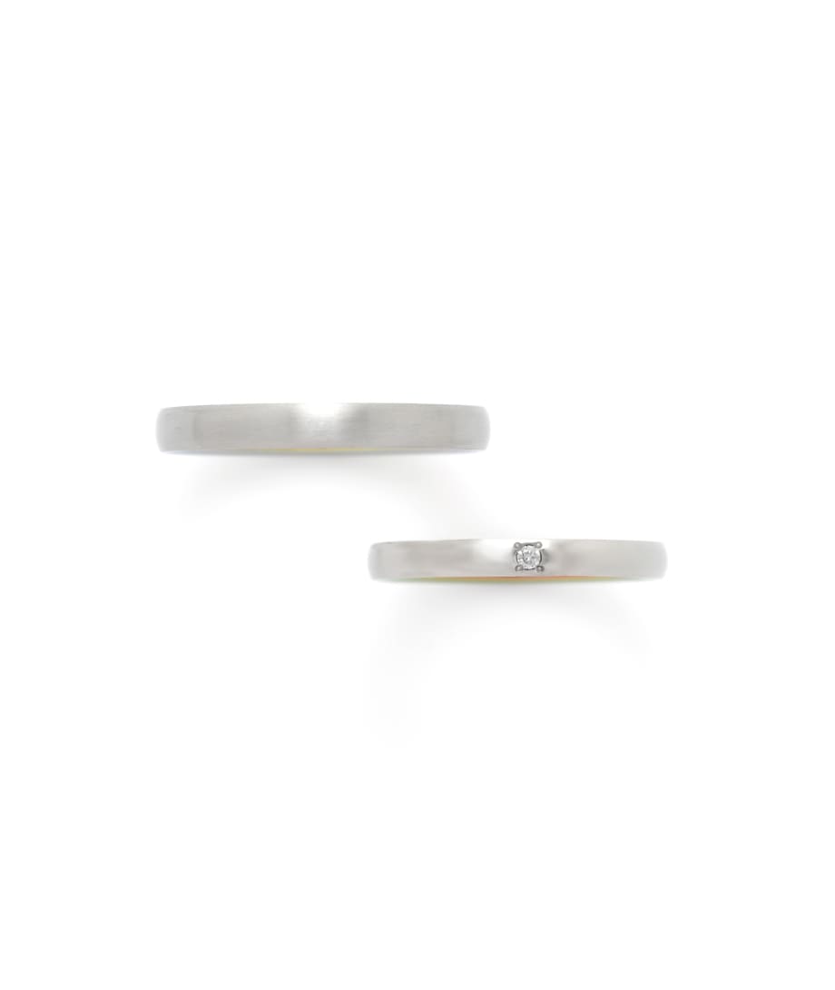 側面を斜めに削ることで、着用したときに発色がさりげなく楽しめるデザイン。