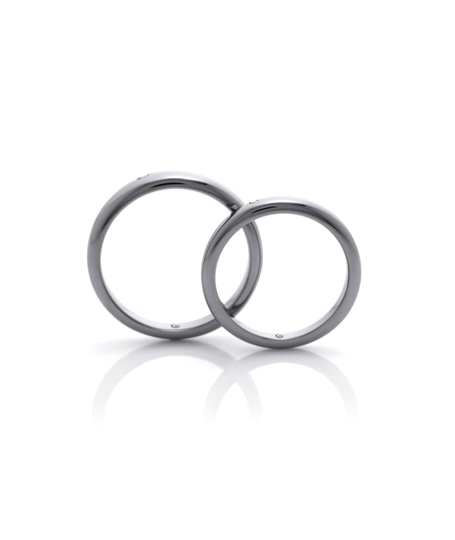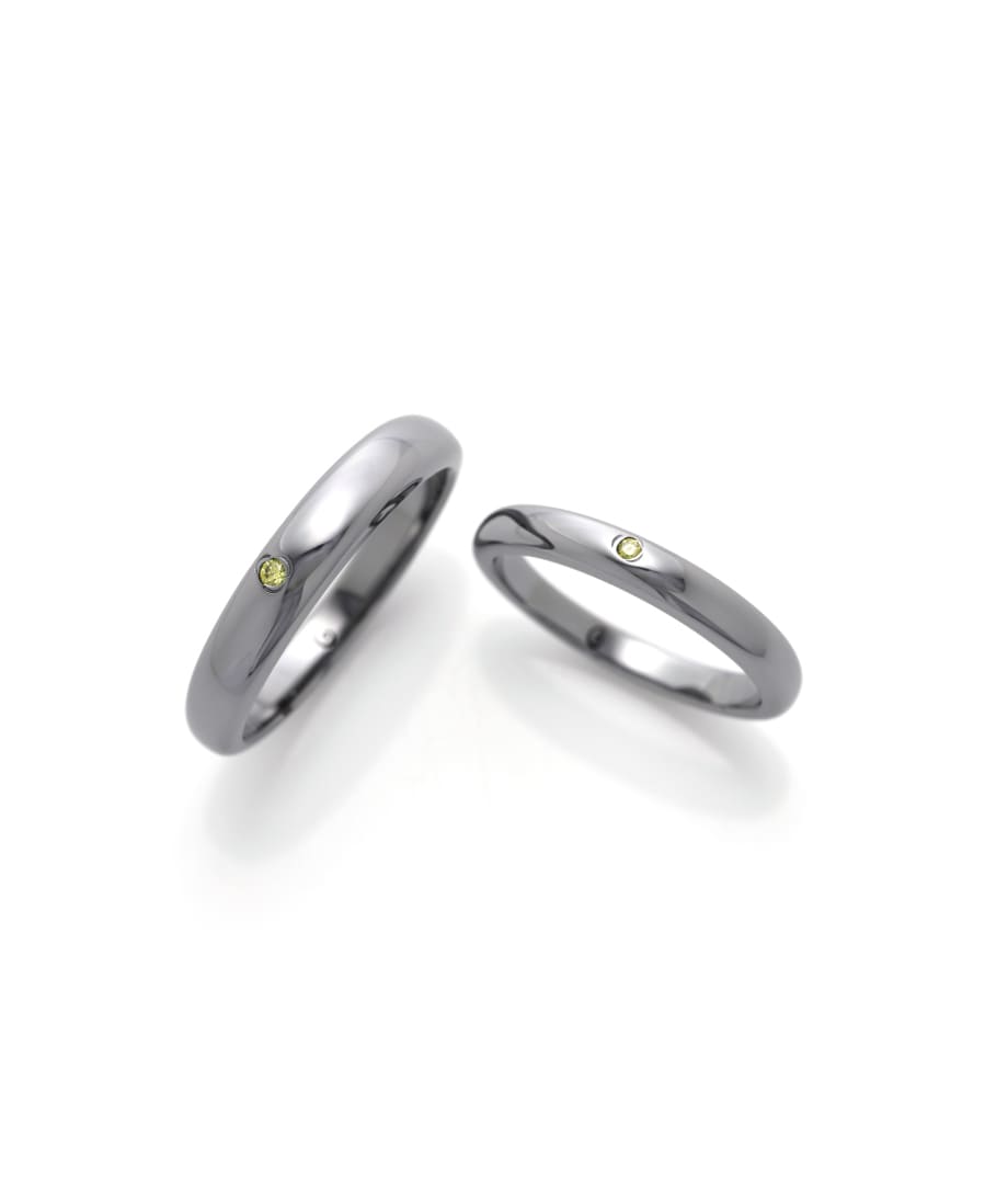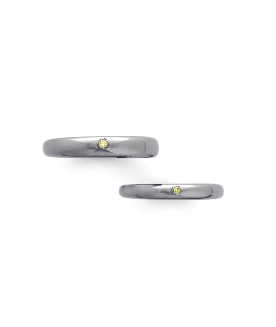 タンタルの艶やかな黒とイエローダイヤモンドが美しいコントラストをなすデザイン。 澄んだ夜空に浮かぶ月を、シンプルに表現しています。