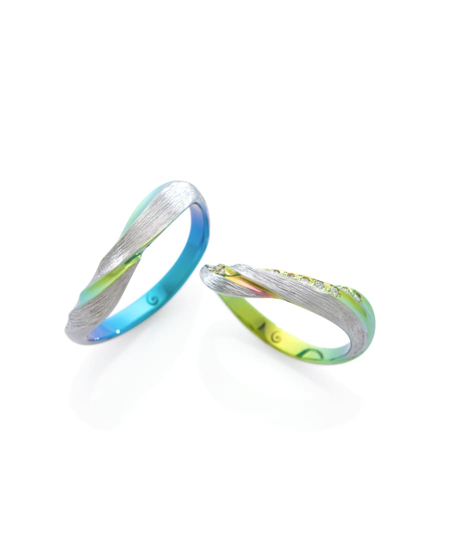 基本のジルコニウムカラーは、単色13色とグラデーション7色。出会いやプロポーズなどの思い出の景色をイメージする色や、二人を象徴する色など、二人の好きなカラーで婚約指輪を彩りましょう。