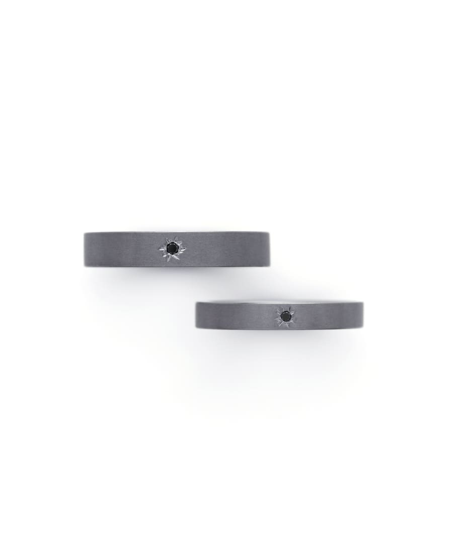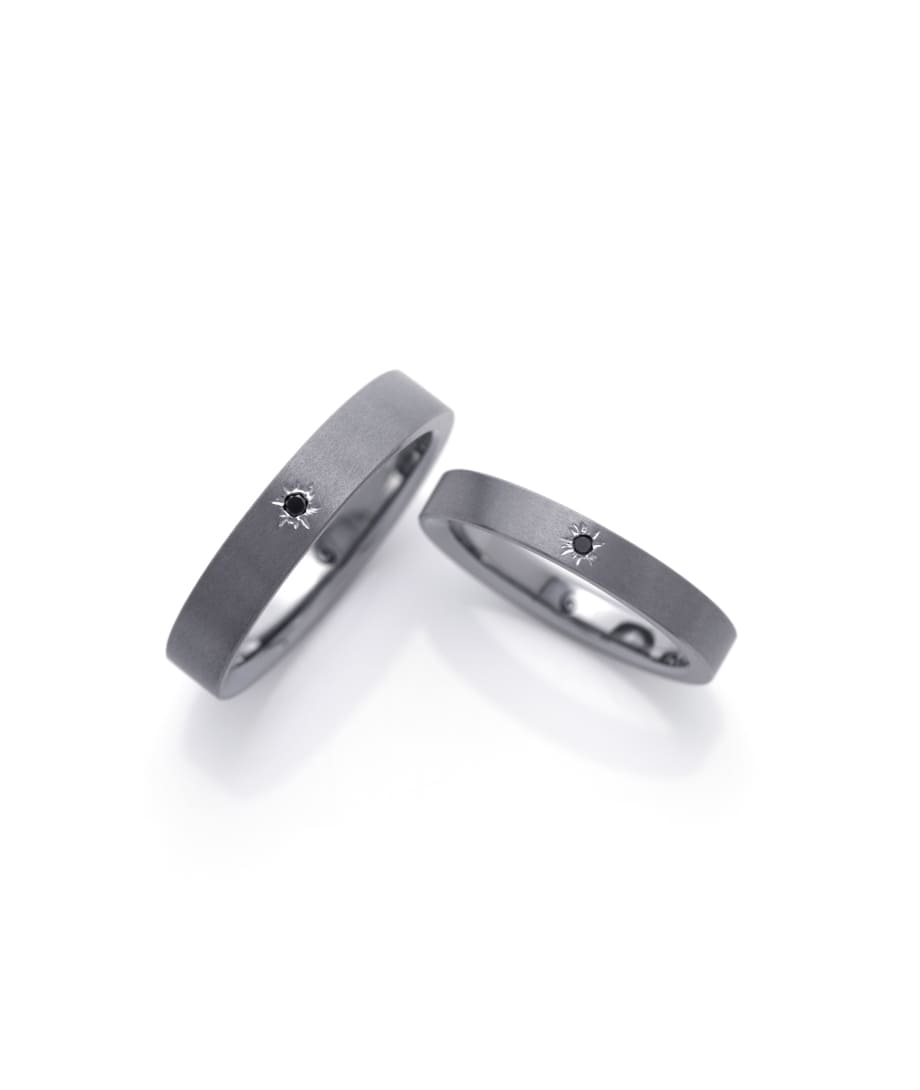 ブラックダイヤモンドを縁取るスタイリッシュな彫りが特徴。皆既日食の際、月の輪郭を囲むように光を放つコロナやプロミネンスをかたどっています。